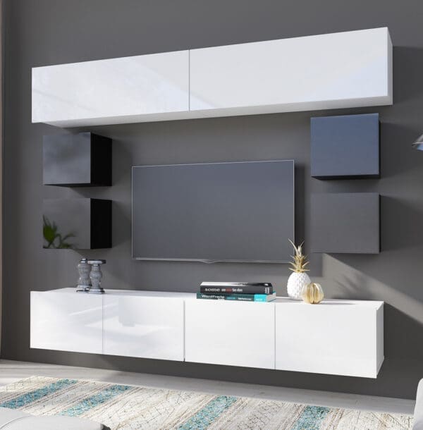 Nábytek do obýváku CALABRIA 6 černý / bílý lesk