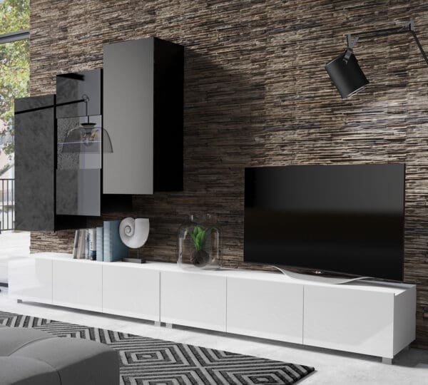 Obývací stěna CALABRIA 11 černá / bílý lesk