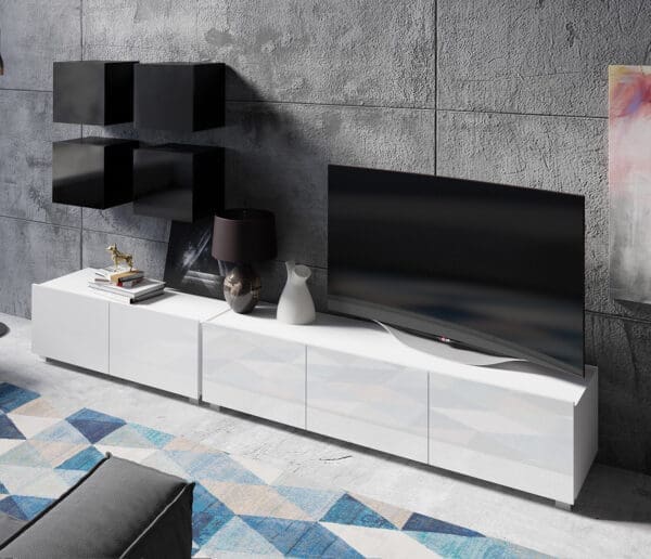 Nábytek do obýváku CALABRIA 16 černý / bílý lesk