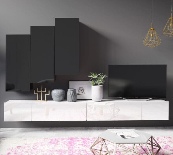 Nábytek do obýváku CALABRIA 16 černý / bílý lesk