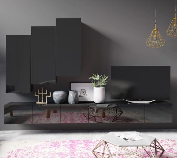 Obývací stěna CALABRIA 15 černá / černý lesk