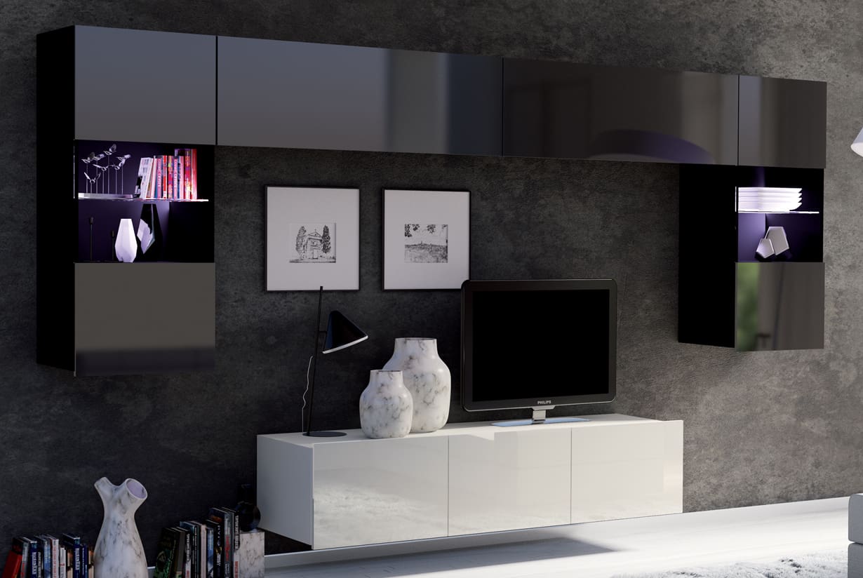 Obývací stěna CALABRIA 5 černá / bílý lesk