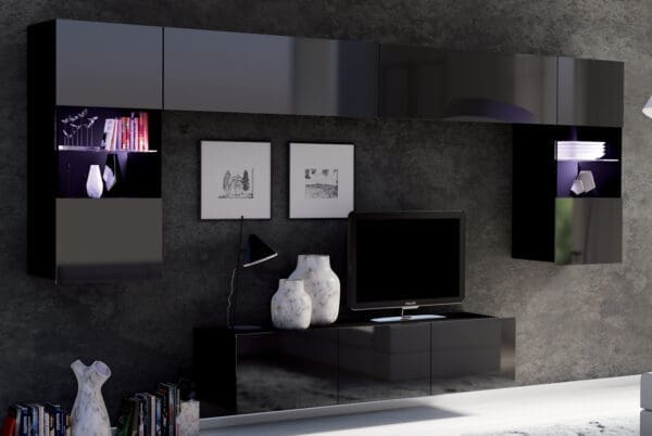 Obývací stěna CALABRIA 35 černá / černý lesk