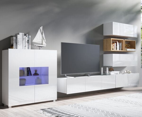 Nábytek do obýváku CALABRIA 6 bílý / bílý lesk