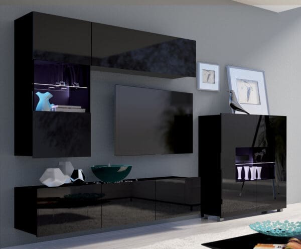 Obývací stěna CALABRIA 32 černá / černý lesk