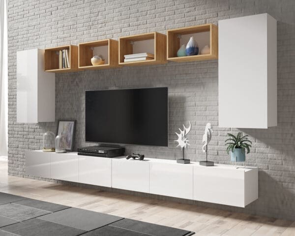 RTV skříňka CALABRIA CL4 (150/37/43) x2 Skříňka závěsná CALABRIA CL8 (45/117/32) x2 Police CALABRIA CL14 (50/33/30) x4 |