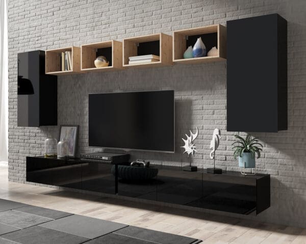 Obývací stěna CALABRIA 30 černá / černý lesk