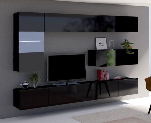 Obývací stěna CALABRIA 35 černá / černý lesk