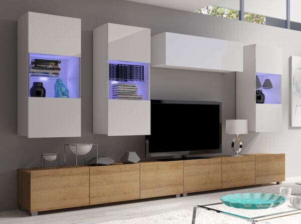 Obývací stěna CALABRIA 11 bílá / dub zlatý