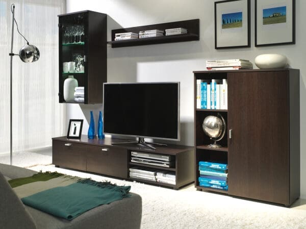 Závěsná vitrína (48/100/30) Závěsná police (110/20) Skříňka Stojící (80/102/30) Komoda pod TV (165/33/40) |
