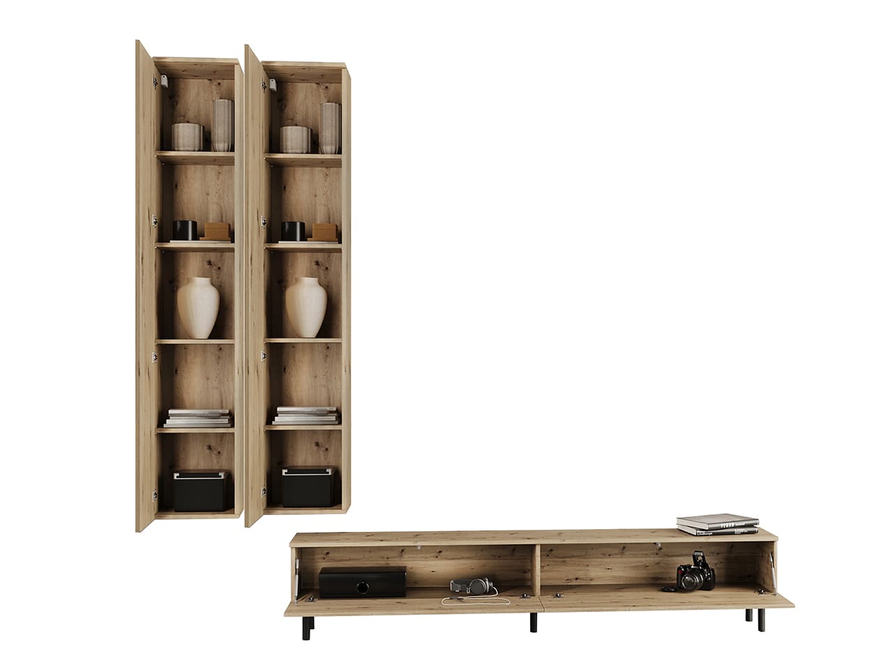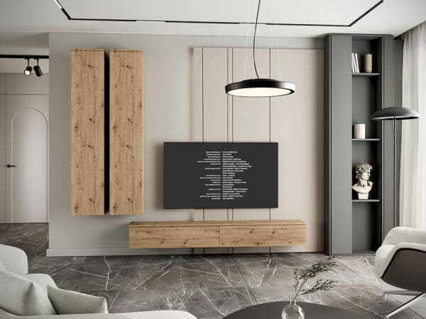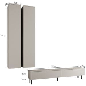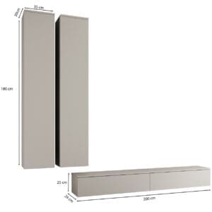 Komoda pod TV 200 FIGO 01 (200/25-42/28) Skříňka závěsná FIGO 02 (35/180/30) x2 |