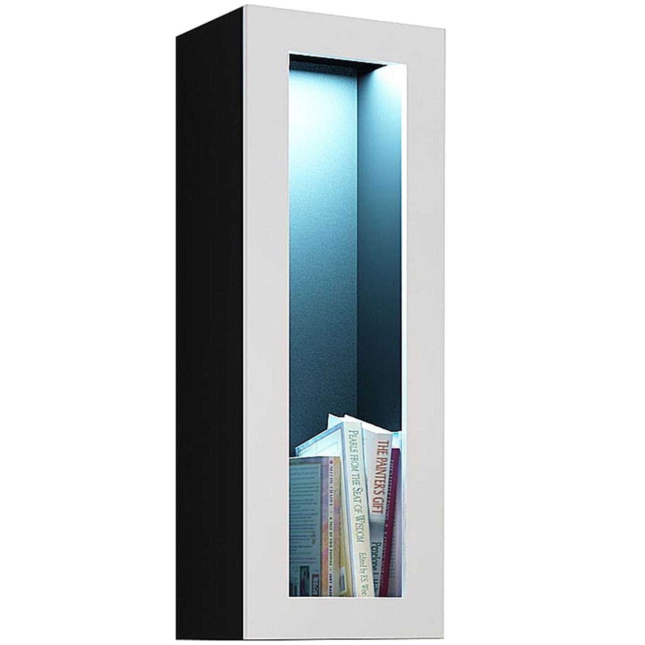 Vertikální vitrína plná GOVI VG2C černá / bílý lesk