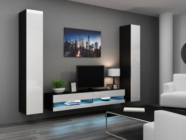 Obývací stěna GOVI NEW 6C černá / bílý lesk