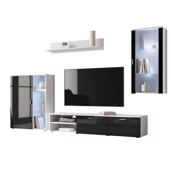 Obývací stěna LOCO 2 bílá / černý lesk