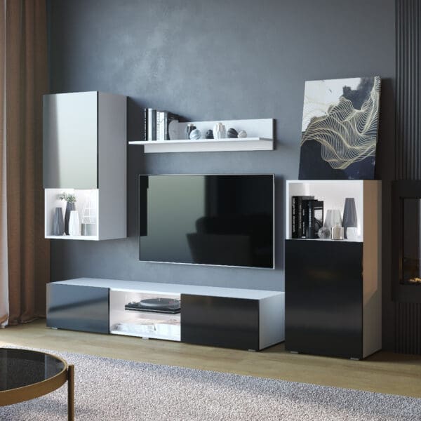 Obývací stěna LOFT bílá / černý lesk