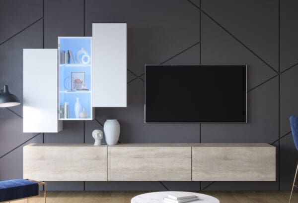 Obývací stěna ONIVIO 2 bílý lesk / dub sonoma