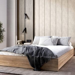 Postel KISTE 160×200 v dekoru dub sonoma je navržena pro každodenní spaní, které kombinuje příjemný vzhled s praktickým řešením úložného prostoru. Díky čistému designu zapadne do různých ložnic a doplňuje útulný charakter místnosti.
