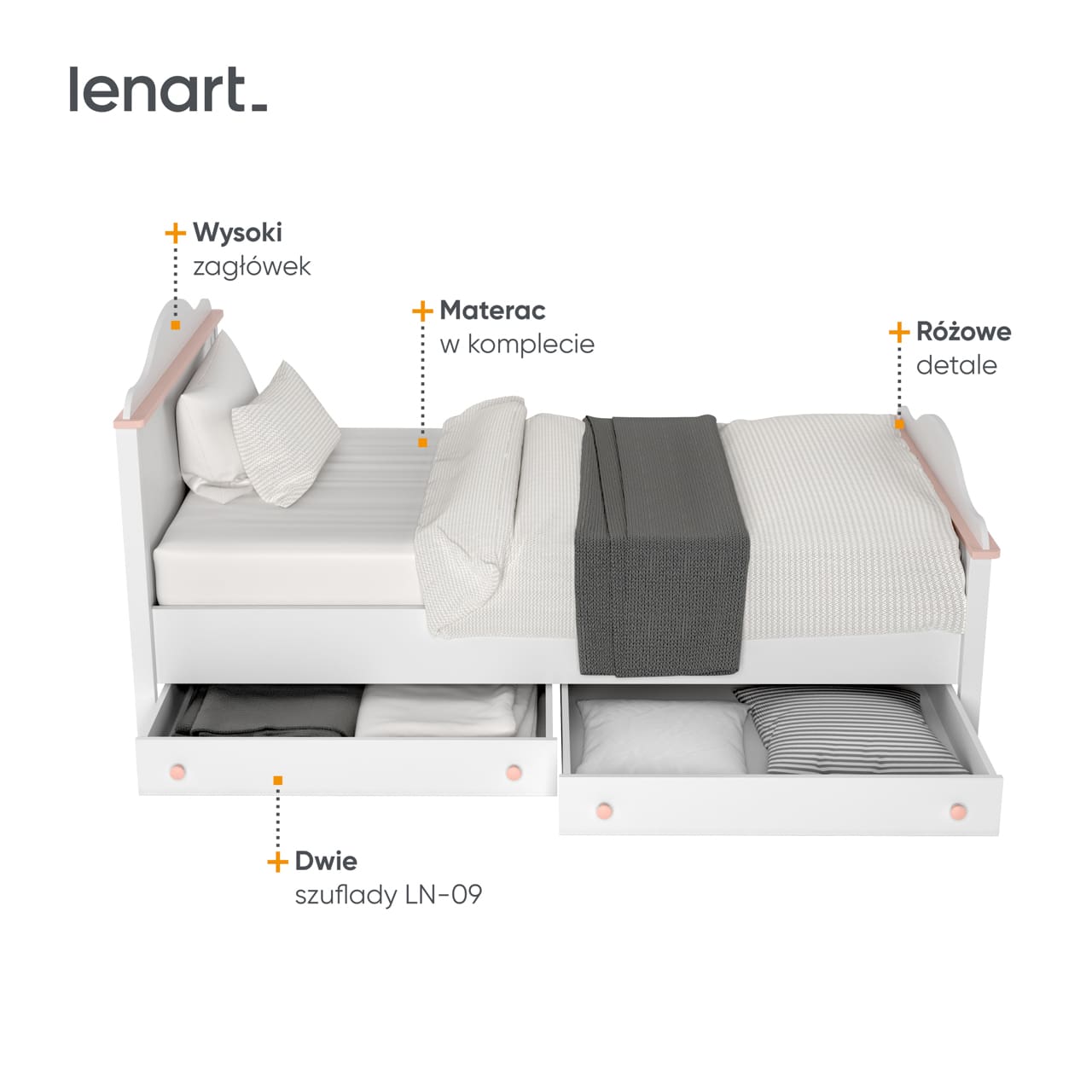 Postel s matrací 90×200 bílá/růžová LUNA LN08