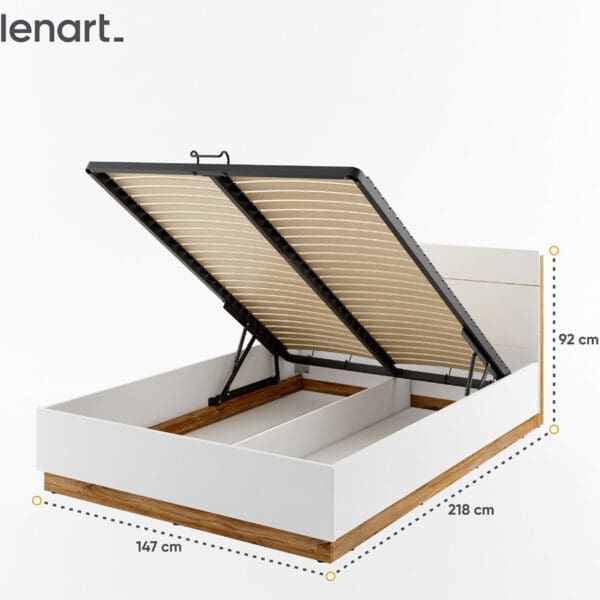 Postel se zdvíhacím roštem 140×200 DENTRO DT02 bílá / dub stirling