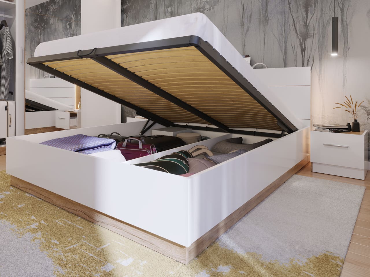 Postel se zdvíhacím roštem 180×200 DENTRO DT02 bílá / dub stirling