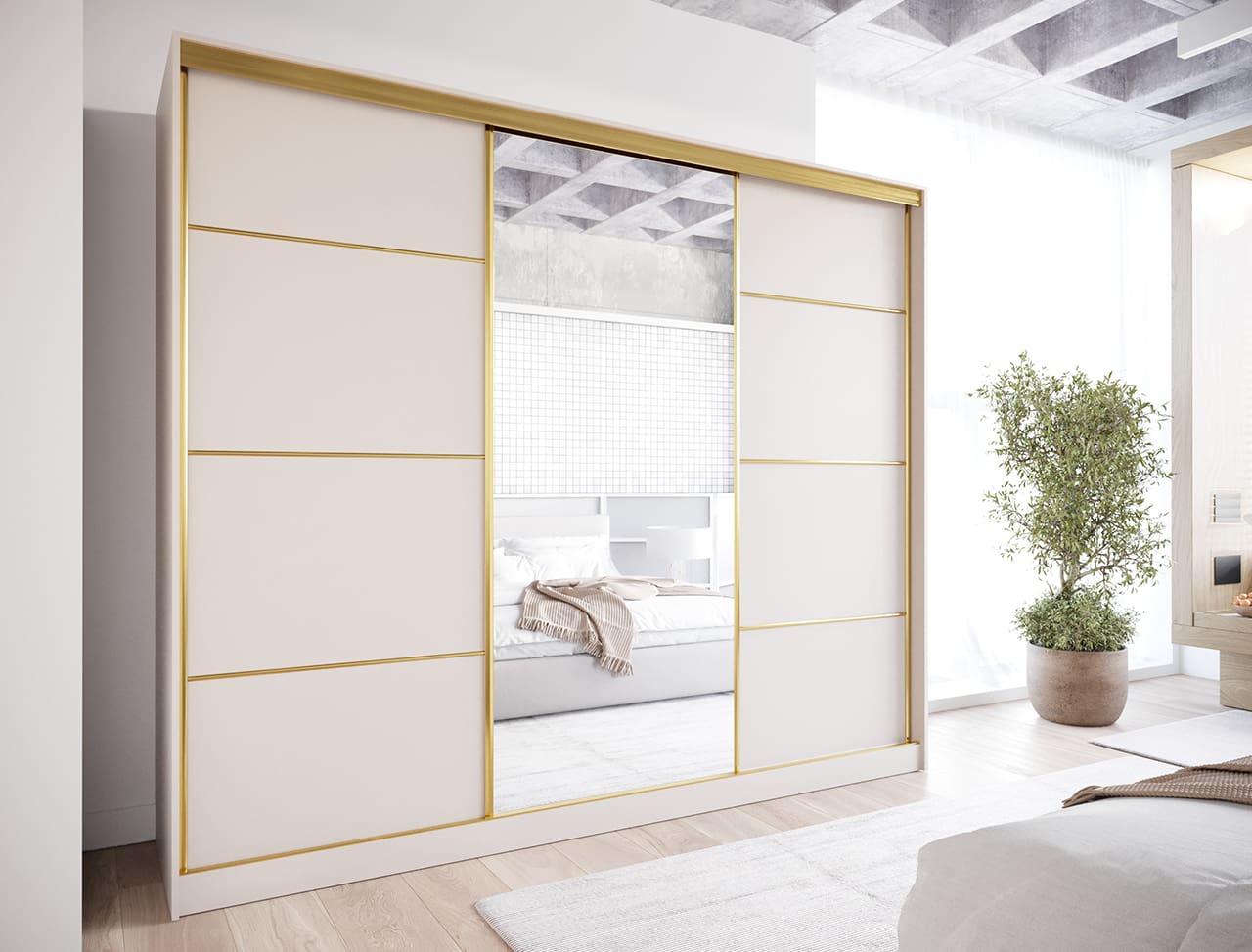 Posuvná skříň se zrcadlem TRIVI A 250 kašmír / zlatá
