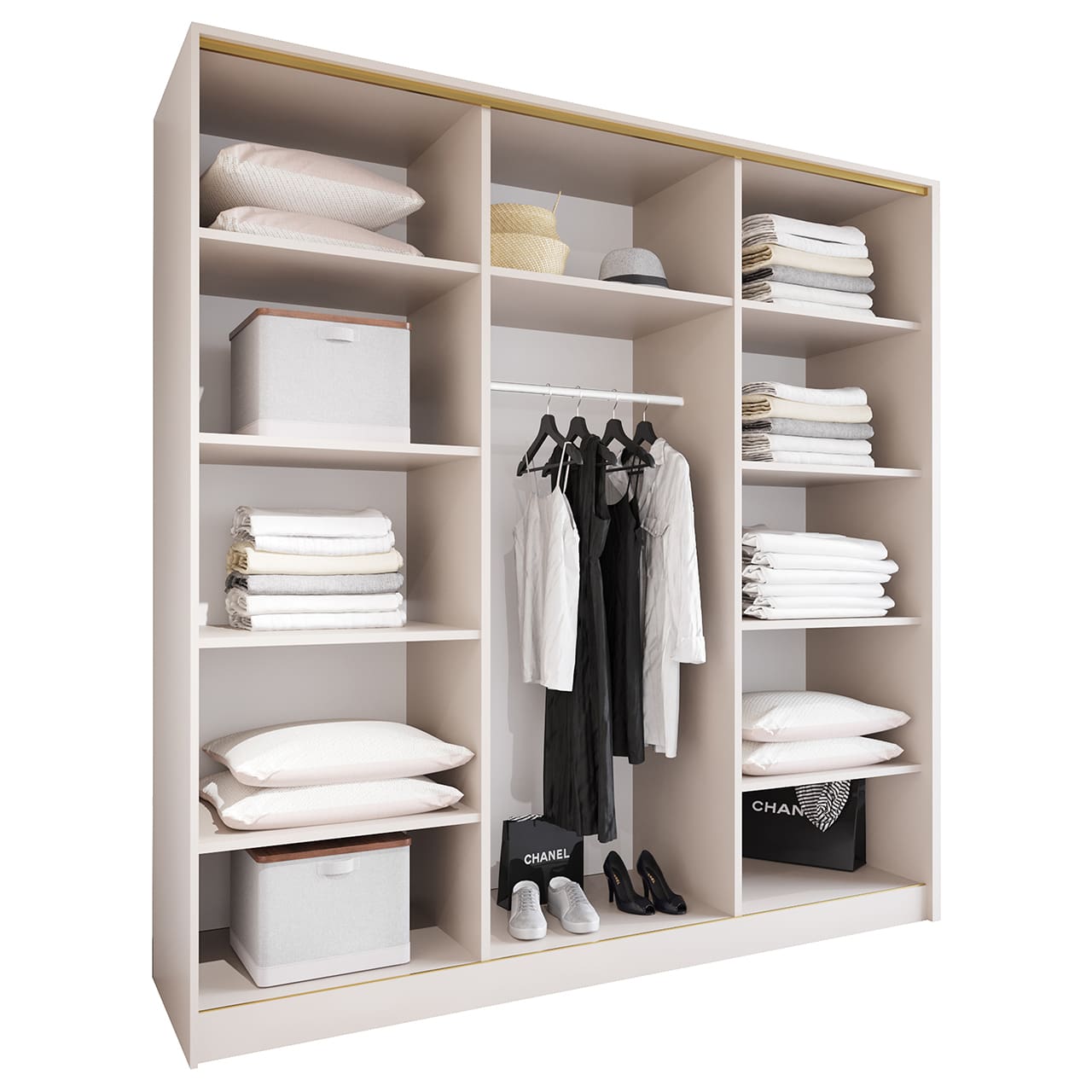 Buďte první, kdo ohodnotí „Posuvná skříň se zrcadlem TRIVI A 200 kašmír / zlatá“