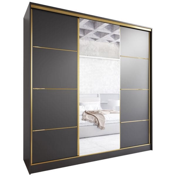 Posuvná skříň se zrcadlem TRIVI A 250 černá / zlatá