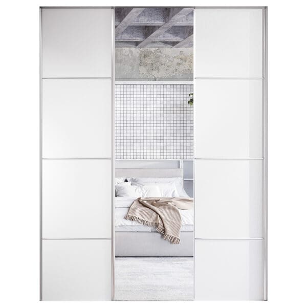 SKU: Front szafy przesuwnej 150 biały (szprosy srebrne + 1lustro)