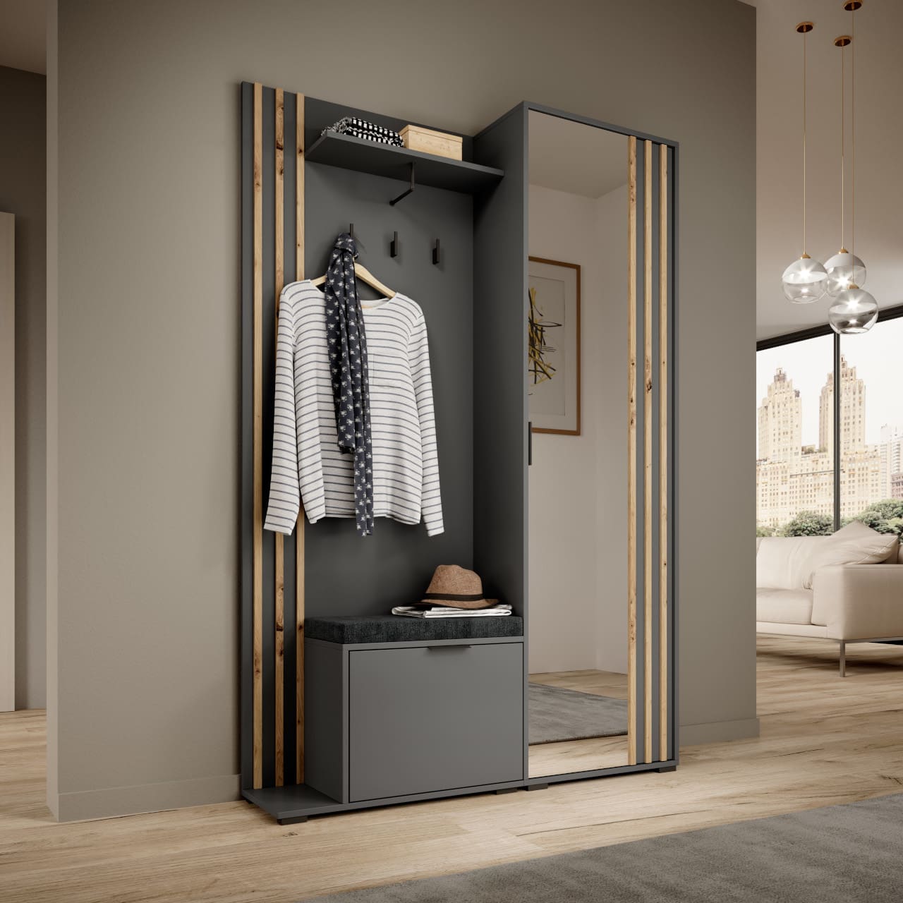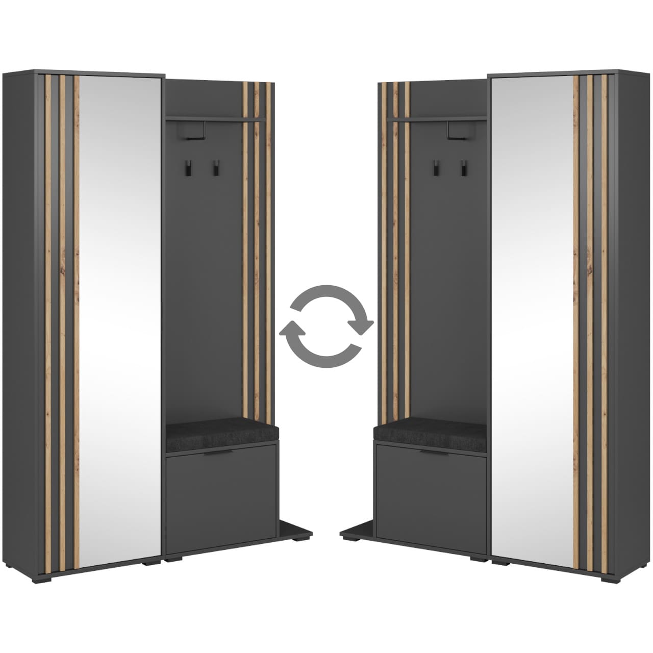 SKU: Garderoba NELLY + siedzisko KRONOS 07 (Garderoba LAILA) grafit / dąb artisan / kronos 07