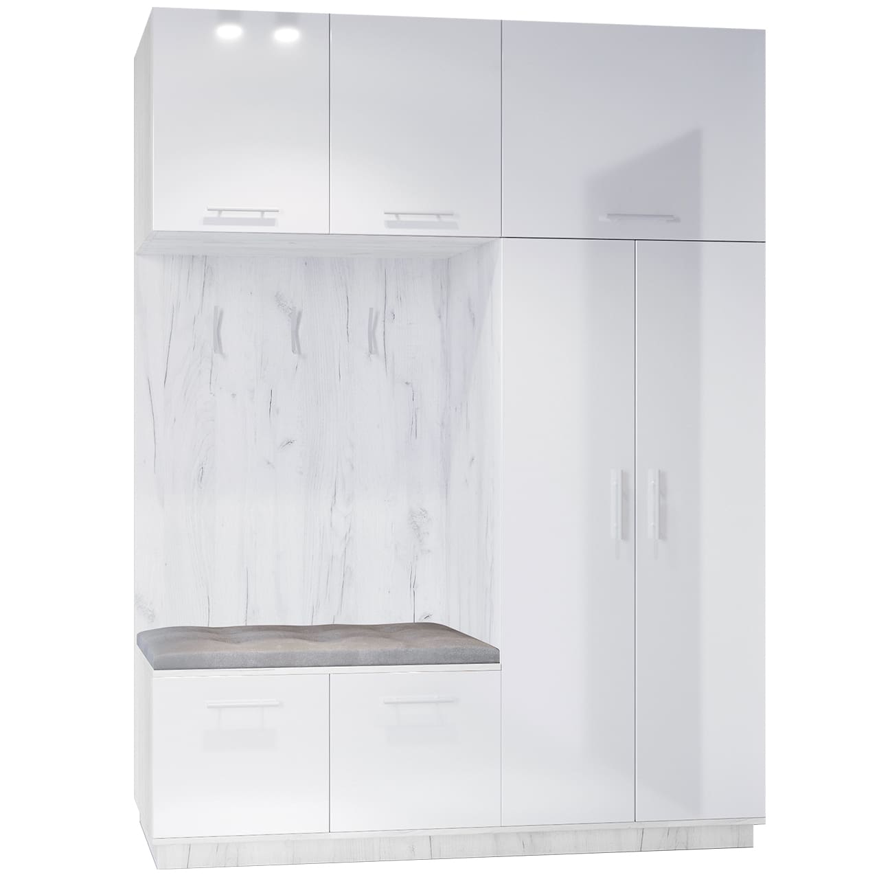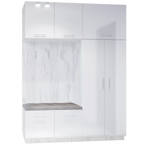 SKU: Garderoba lewa c.biały/b.połysk(G/CR-B) + poduszka szary (MO-84)