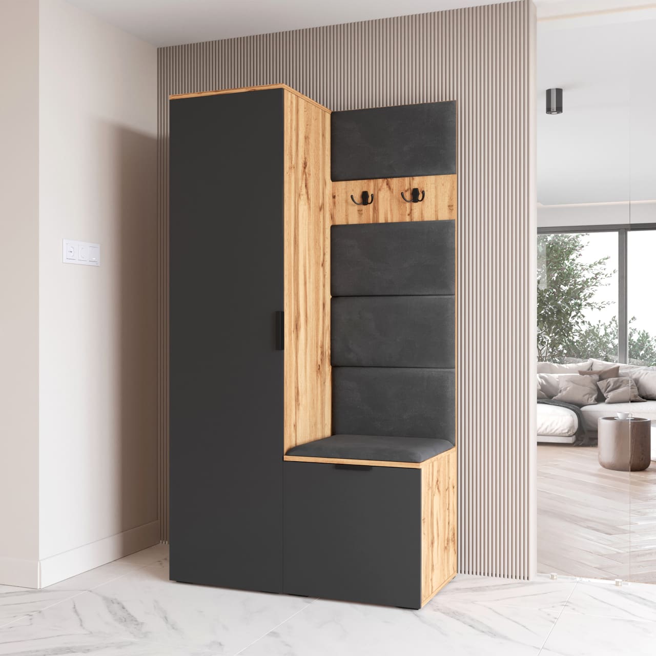 Předsíňová stěna NELLI 1 dub wotan / šedá levá