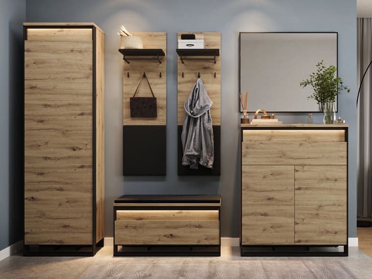 Skříň do předsíně QUANT QG01 dub artisan + černý
