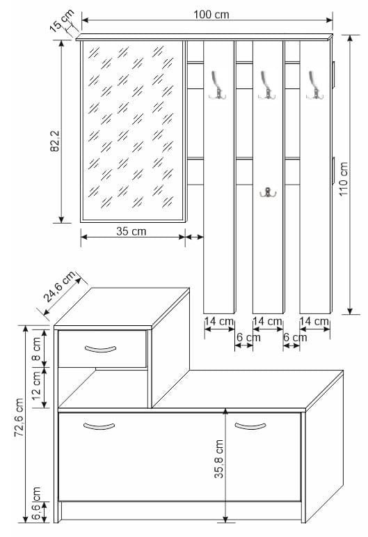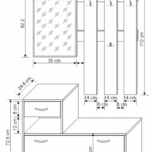 - Praktičnost: přehledné uspořádání pro odkládání svrchních oděvů a drobných doplňků.