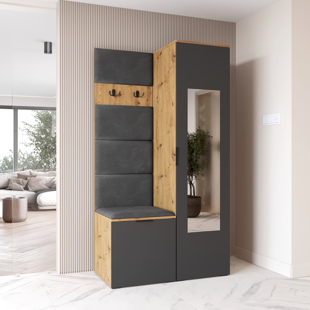 Předsíňová stěna se zrcadlem NELLI 1 dub artisan / šedá levá