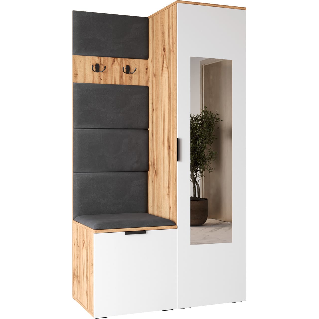 Předsíňová stěna se zrcadlem NELLI 1 dub wotan / bílá pravá