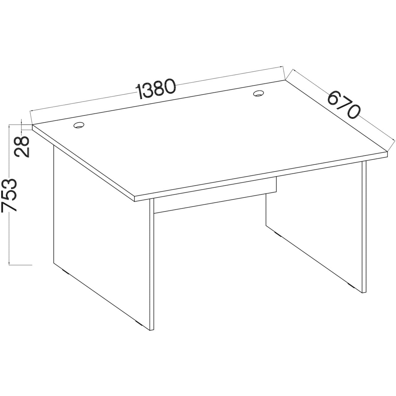 | Materiál | Laminovaná dřevotříska 28mm (Pracovní deska), 22mm (boky) a 18mm (zadní část). | |