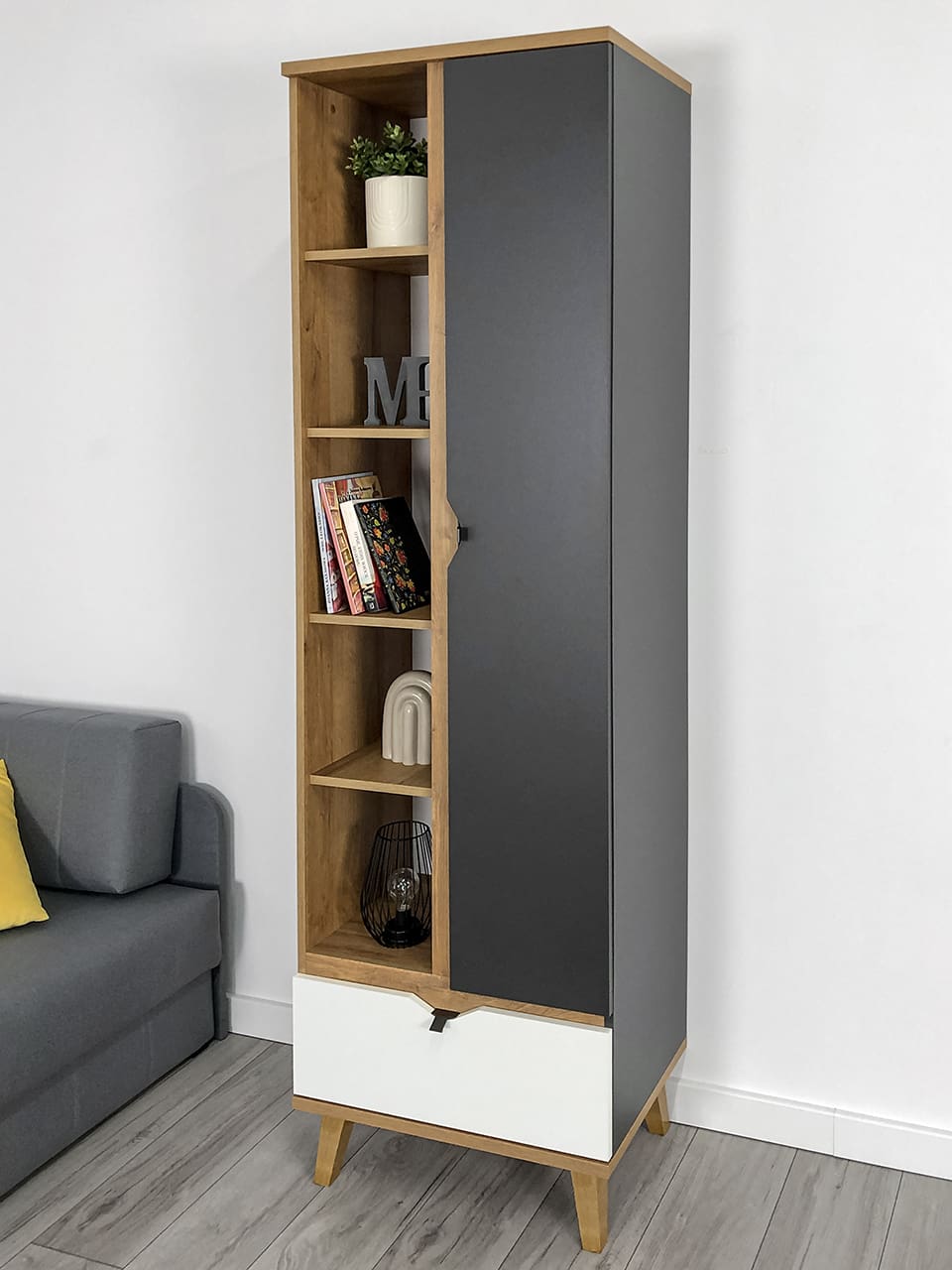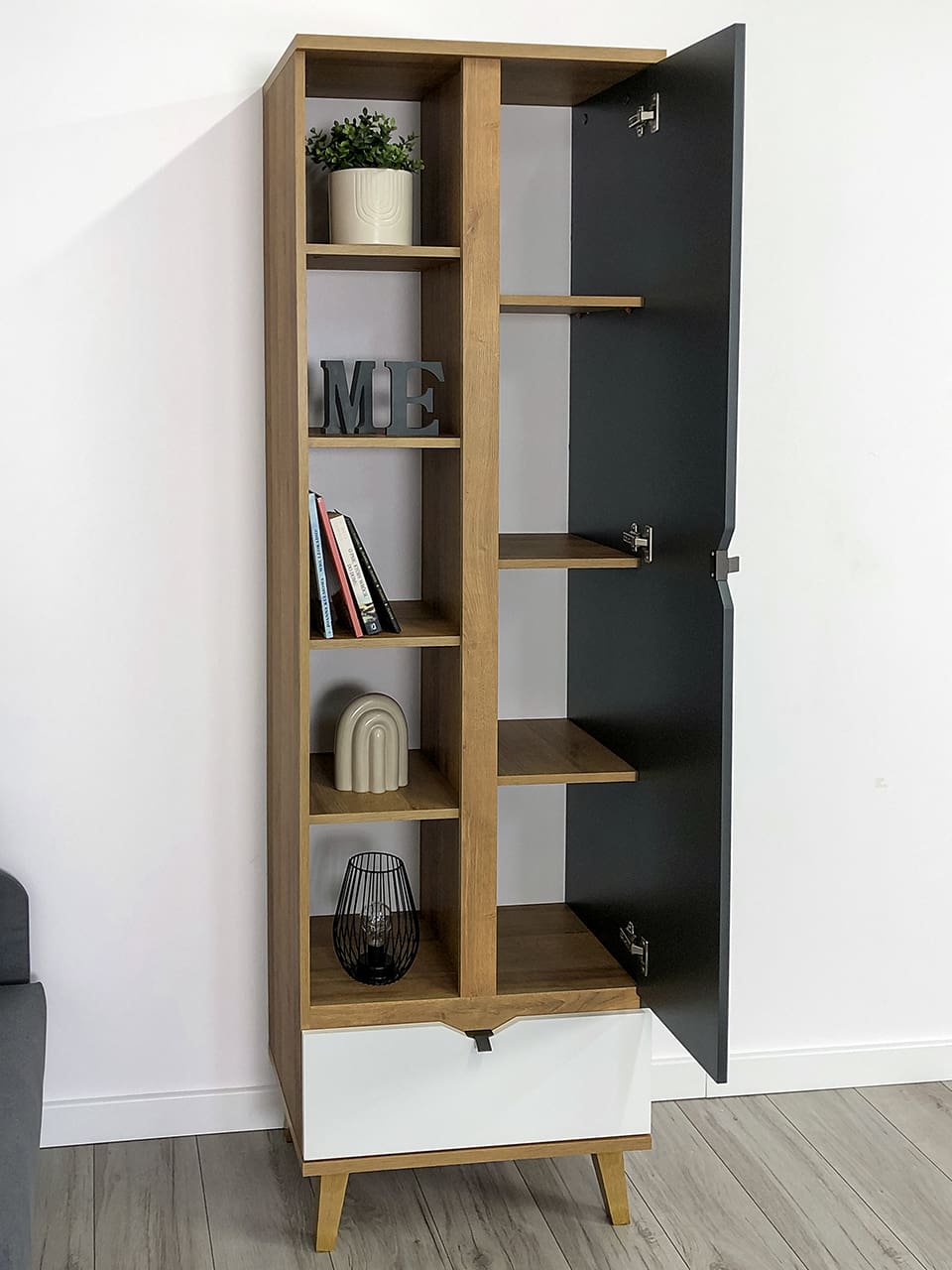 SKU: Regał R1D1SZ MEMONE ME6 dąb złoty / biały / grafit
