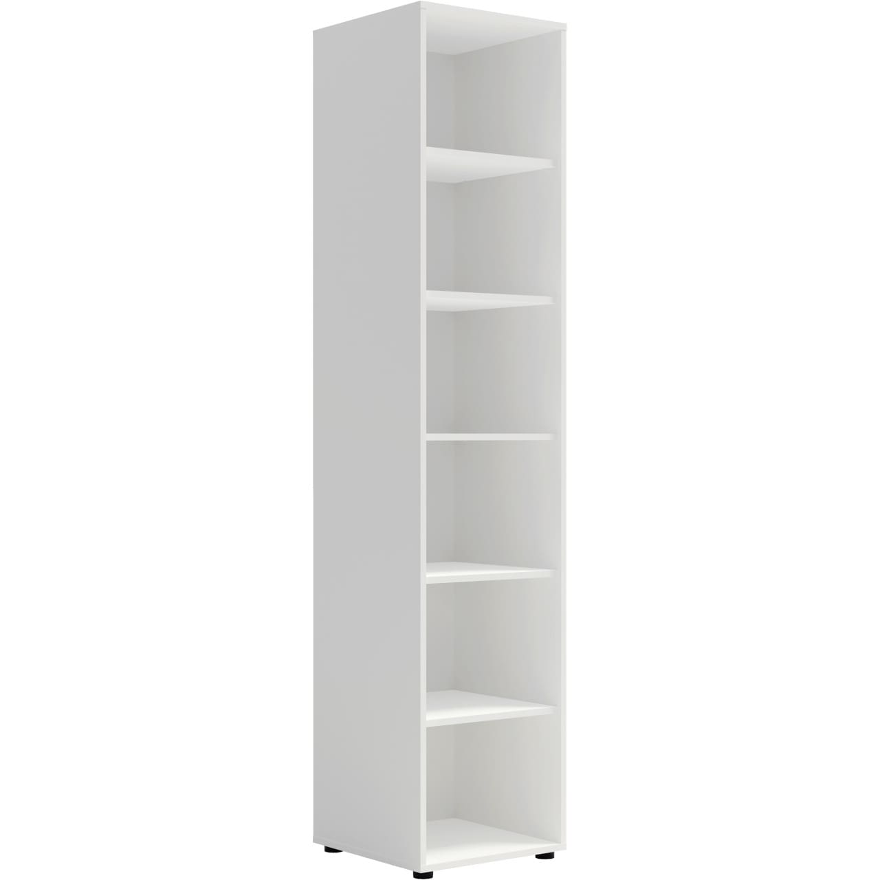 Regál MAXIS 08 v bílém matu nabízí diskutabilně jednoduché řešení pro ukládání v místnostech, kde je podlahová plocha omezená a prostor je třeba využít do výšky. Jeho úzký profil se snadno umisťuje do koutů nebo podél zdi, takže vytváří pořádek bez výrazného odstupu od stěny.