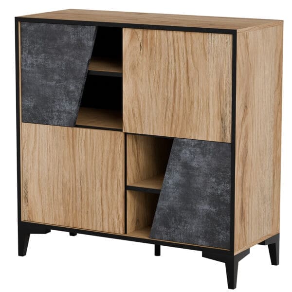 Komoda OVO 4D Beton Tmavý / Dub prvotní VÝPRODEJ