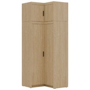 Rohová skříň ELENI 2D v dekoru olejovaný dub je navržena pro optimální využití rohu místnosti. Díky kompaktním rozměrům a jednoduchému vzhledu pomáhá vytvářet pořádek bez zbytečného zahlcení prostoru — vhodné řešení jak do menších, tak do větších místností.