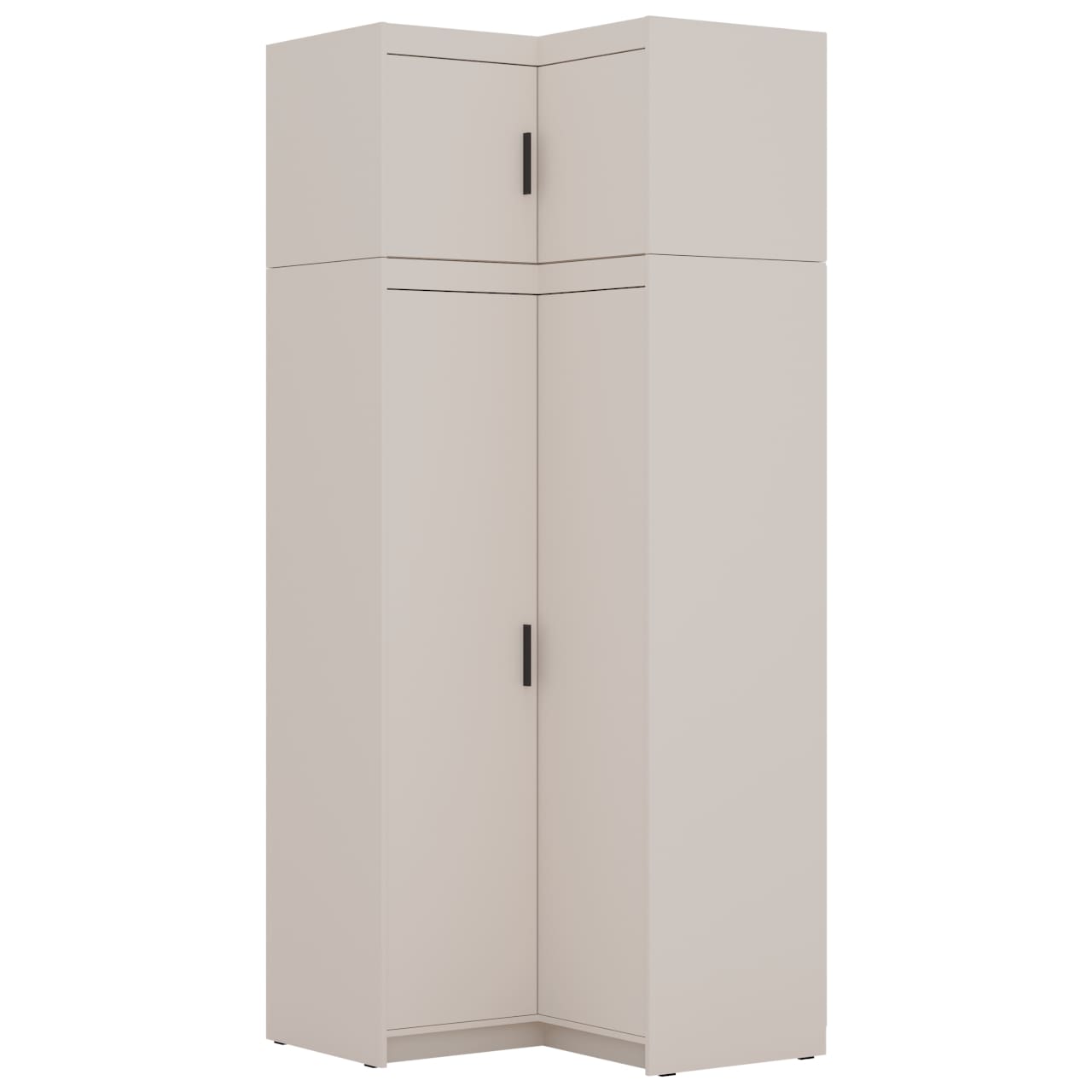 Rohový nástavec ELENI 2D v pískově béžovém provedení je navržen jako doplněk pro rohové zakončení skříně. Díky jemnému barevnému tónu poskytuje jednotné, tlumené zakončení nábytkového celku a přispívá k uklidněnému vzhledu interiéru.