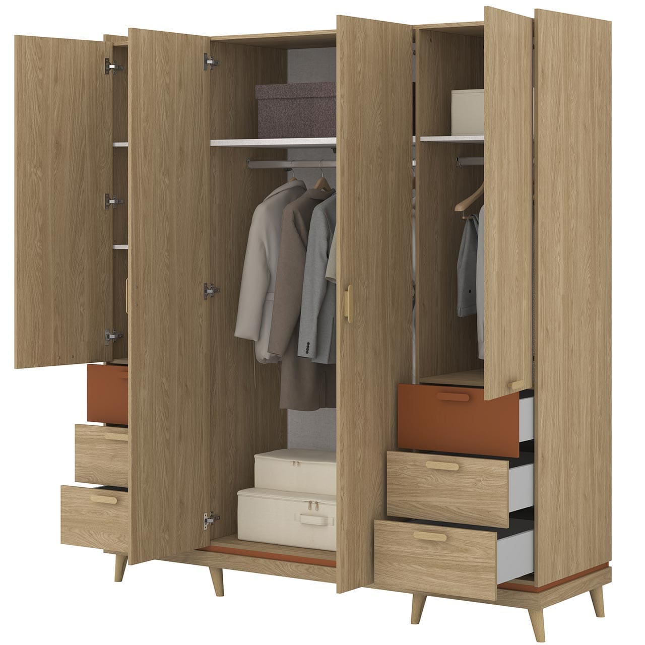 SKU: 24D5OH20 Szafa SCANDI 4D6S dąb olejowany-ceglany
