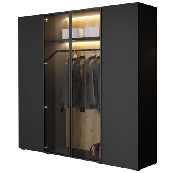 SKU: Szafa OL200 FGSZ (front płyta gładki+szkło);czarny/czarny/ramka czarna