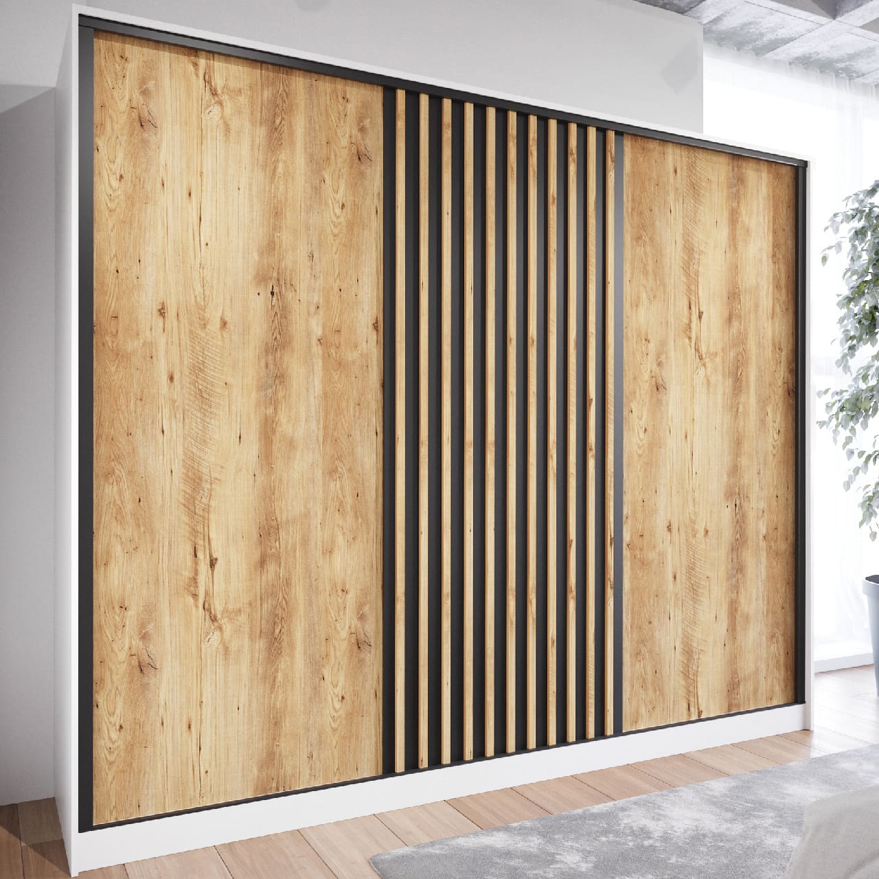 SKU: Szafa przesuwna 270 biały/wotan/czarny;1 lamel; bez szuflad