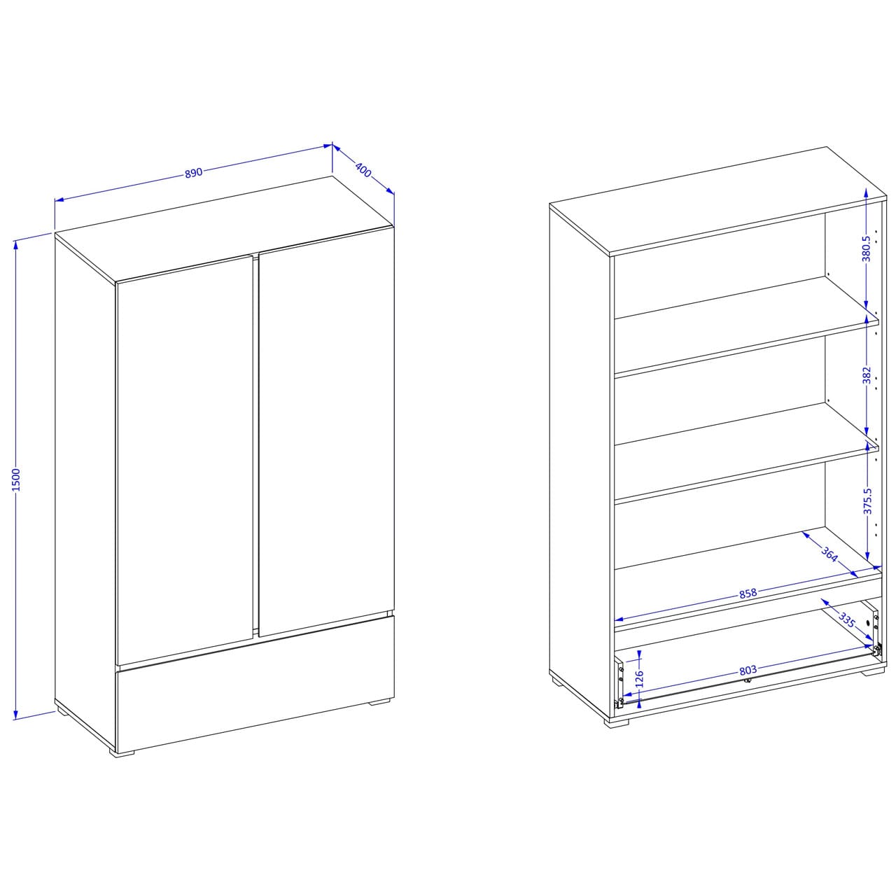 SKU: 24N6MY38 CROSS S - Bieliźniarka 2 drzwi 1 szufl. wotan / czarny