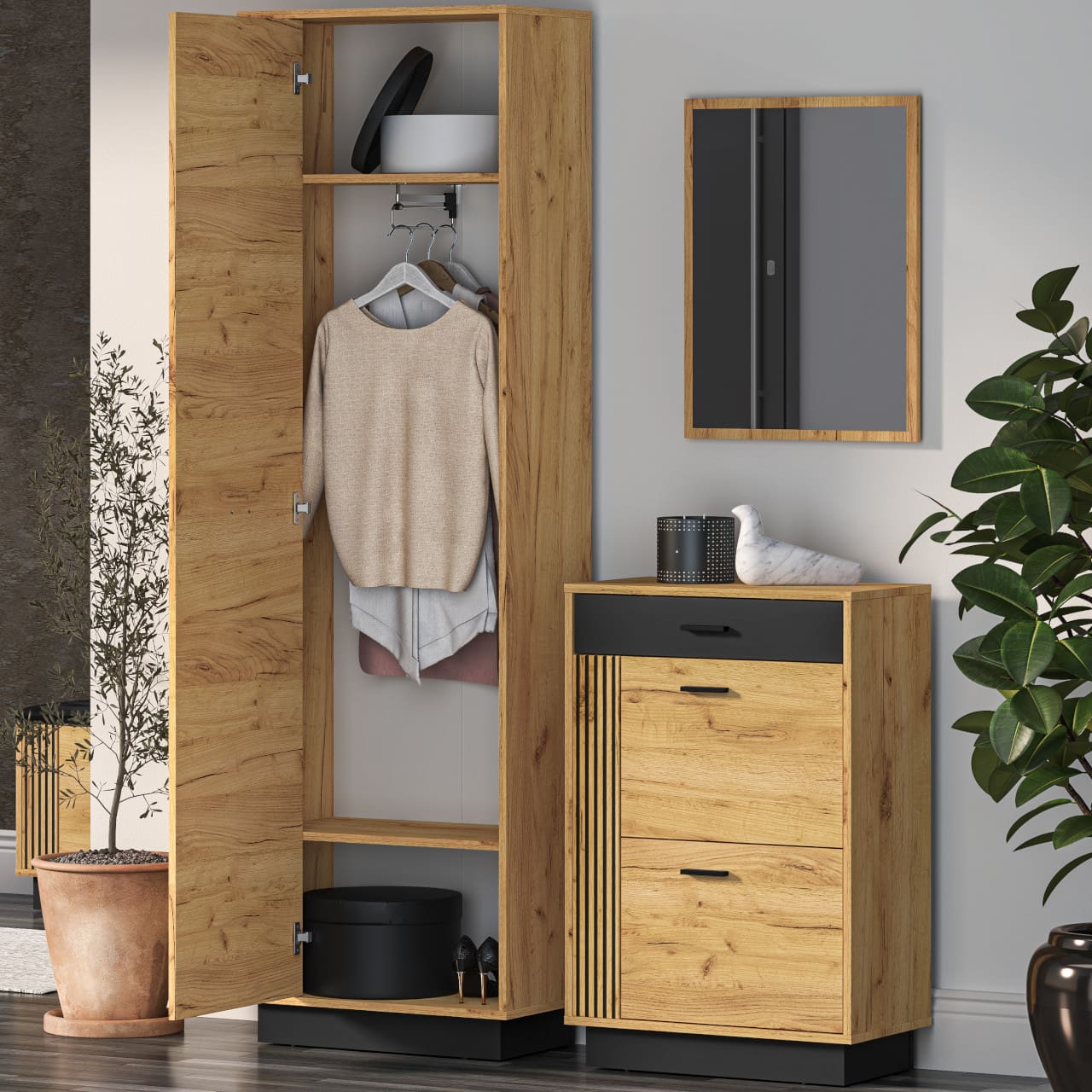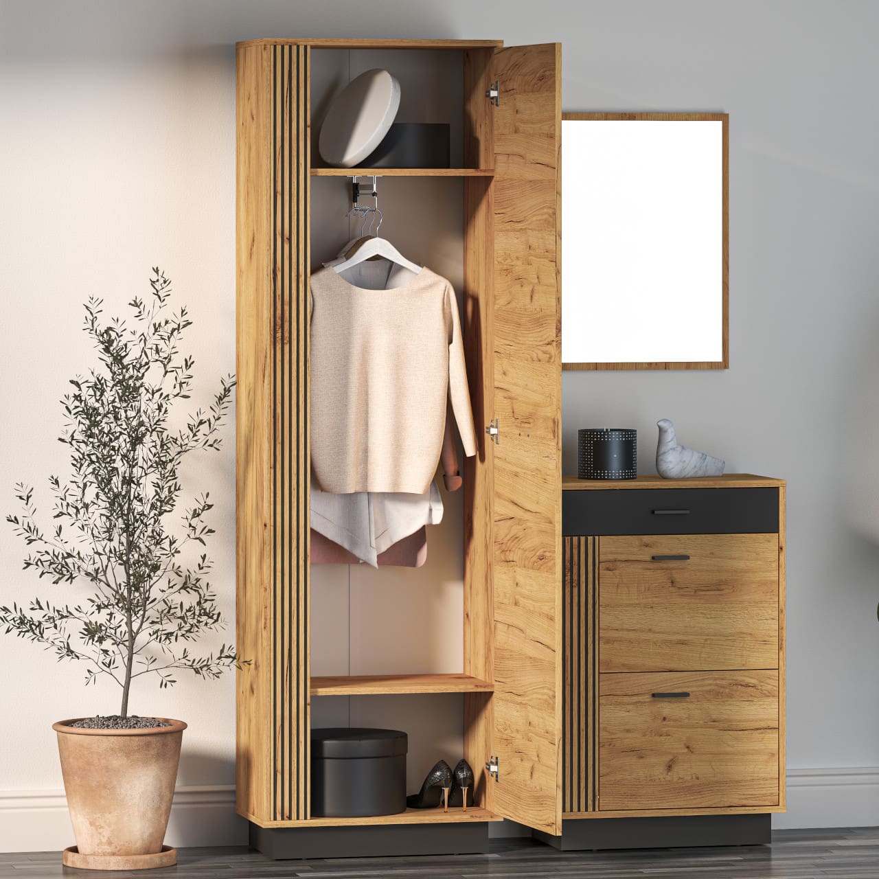 Buďte první, kdo ohodnotí „Skříň do předsíně URSA 15 dub craft zlatý + černý“