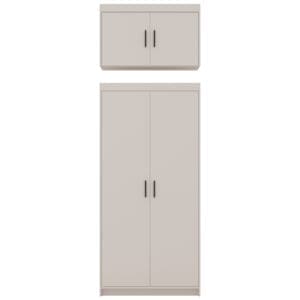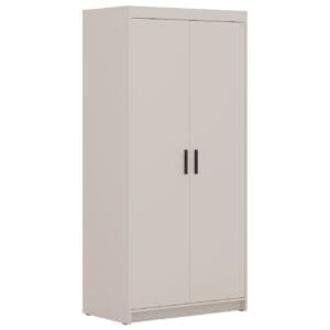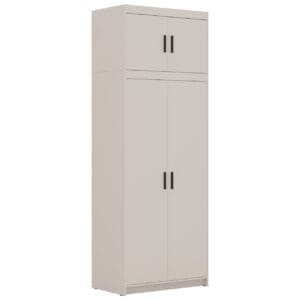 Skříň ELENI 2D v pískově béžovém provedení je navržena pro efektivní využití prostoru bez nápadných dekorů. Její kompaktní rozměry umožňují umístění v úzkých chodbách i v menších ložnicích, přitom zachovává přehlednost úložného prostoru.