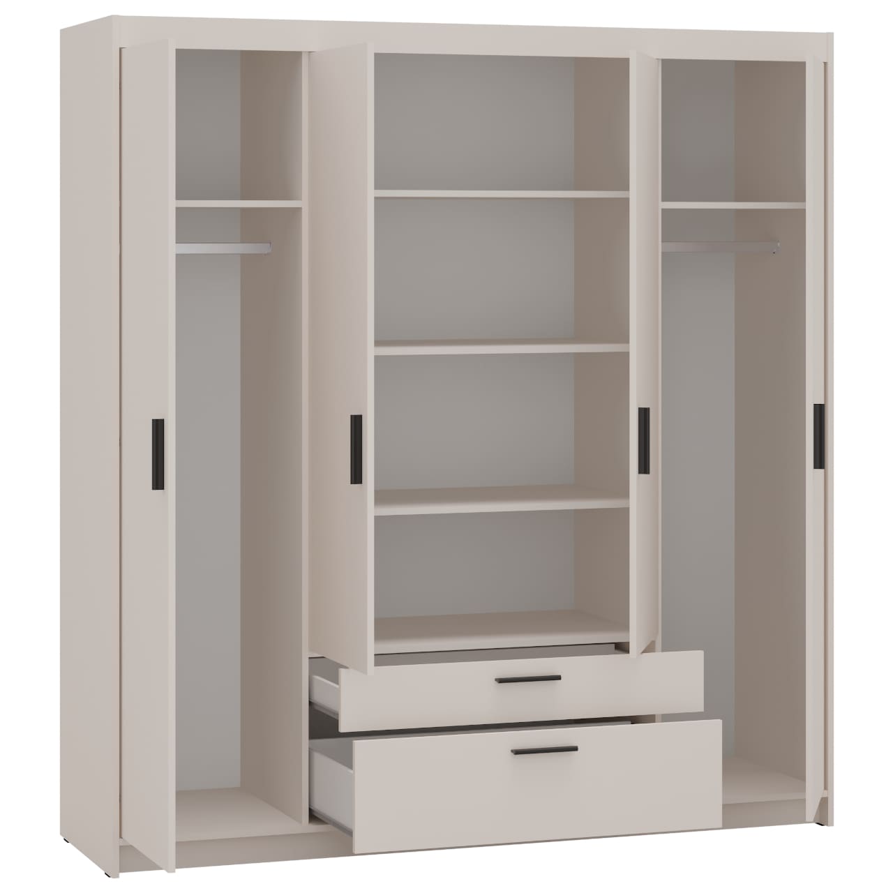 Skříň je určena pro uživatele preferující komfort při každodenním zacházení s oblečením a nenáročný dekor. Hodí se do ložnice, šatny nebo větší předsíně, kde oceníte přístupnost a přehlednost vnitřního uspořádání.