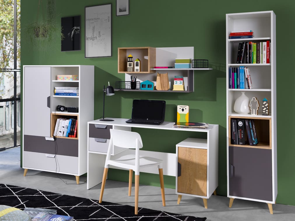 Psací stůl JOKI JK13 bílý / grafit / šedý