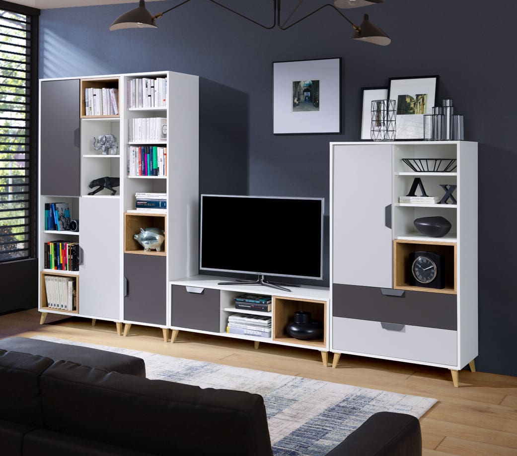 Komoda RTV JOKI JK10 bílá / grafit / šedá